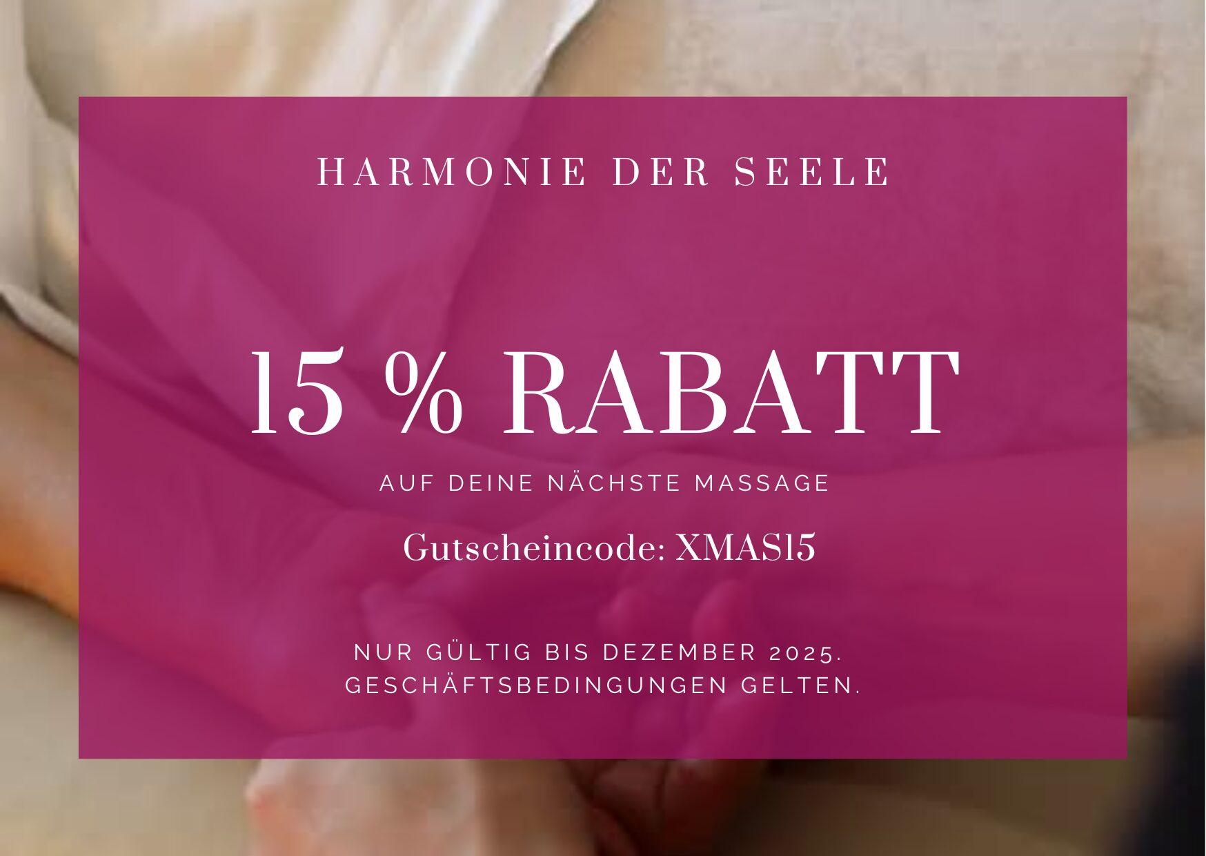 🎁 Gutscheincode: XMAS15 – 15 % Rabatt auf Deine nächste Massage